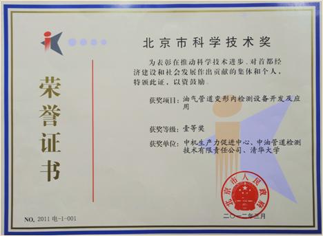 在此次奖励大会表彰了近两年在发展首都科技事业、促进首都经济社会发展中取得突出成绩的科技成果。由中机生产力促进中心负责完成的“油气管道变形内检测设备开发及应用”项目荣获北京市科学技术奖一等奖。